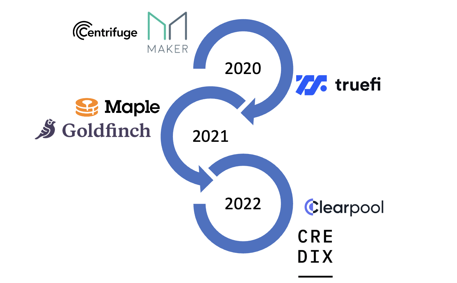 With the assistance of real-world asset pools on Centrifuge, MakerDAO ushered in real-world lending back in 2020 on the back of the approval of the proposal for the DAO to onboard off-chain real-world assets (RWA). On the other hand, uncollateralized institutional lending came to light with the launch of TrueFi in Nov 2020 and Maple Finance and Goldfinch in mid-2021. Stepping into 2022, as DeFi space reels from crypto winter, Clearpool, and Ribbon Lend, among other protocols that target institutional borrowing, continue to enter the space.
